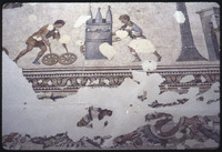 Detail of mosaic of children playing with hoops