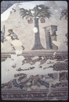 Detail of mosaic with palm tree and triumphal arch