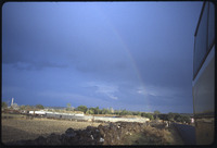 View of rainbow and distant mosque