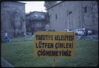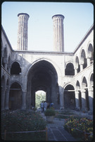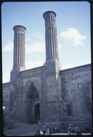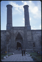 Children sitting in front of decorated wall of Yakutiye Madrasa