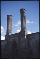 Detail of ornamentation on south iwan archway in Twin Minaret Madrasa