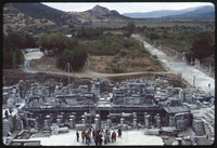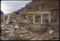 Ruins of round structure in Domitian Square and relief of Flying Nike