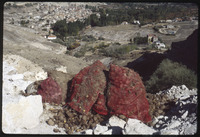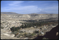 View over Sognali Valley with sacks of potatoes