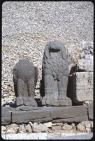 Headless eagle and lion statue