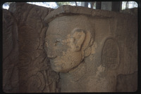 Detail of face on winged lion relief sculpture