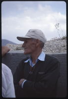 Unidentified man in front of cuneiform wall