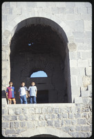 Children standing in opening of city wall