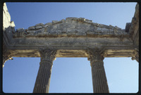 Detail of inside of pediment and capitals of the Capitol of Dougga