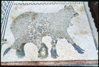 Umm al-Rasas - Church of the Lions - damaged mosaic of a bull