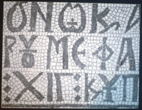 Umm al-Rasas - Detail of Greek inscription in mosaic in Church of St. Stephen