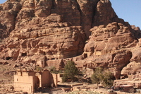 Jordan. Petra, Temple of the Winged Lions, Jabal al Habis, with the previous museum which closed in 2000