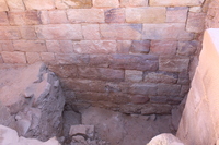 Jordan. Petra, Temple of the Winged Lions, north wall of TWL, facing west, sandbags used to keep corridor wall from collapsing