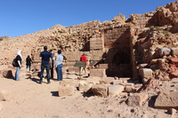 Jordan. Petra, Temple of the Winged Lions, northwest corner of TWL, sandbags, team members