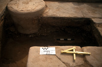 Sounding 15, remains of Wall WW under the drum; pavement of the forecourt and atrium. Atrium. Sq. K2, test trench; Loci 05B,05C