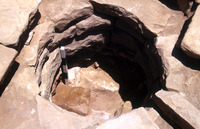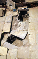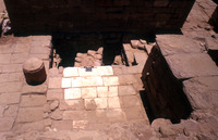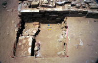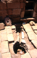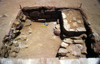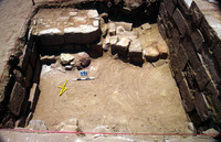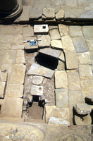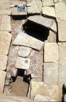 Western Portico - Cistern of Phase IV, drain head (reservoir), and a connecting channel. Sq. L2; Loc 07, 09
