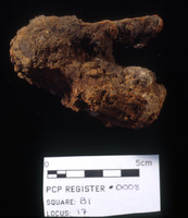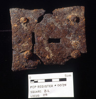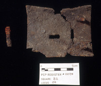 Pre-conserv. Photo of Cu Alloy object. - Sq. C1. Studio. Locus 19/Pail 51/FN6. Reg #PCP.0092
