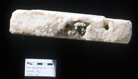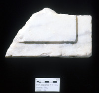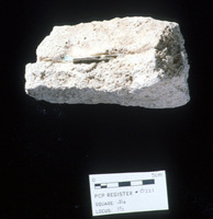 Plaster window frame with glass attached. ***35-36 mag.1:2***37-38 groove for glass. - Sq. J4. Studio. Locus 15/Pail 29/FN2. Reg #PCP.0221