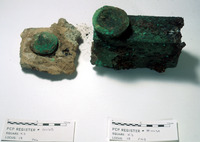 Reg #PCP.0113A. Door hinge. Pre #PCP.0113B. Hinge mount. - Sq. K3. Studio. Locus 18/Pail 57/FN3 & 4.