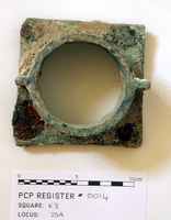 Reg #PCP.0114. Cu/Cu alloy door fitting w/iron nails. - Sq. K3. Studio. Locus 25A/Pail 60/FN1.