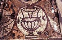 Mosaic depicting a peacock and an amphora- North Aisle