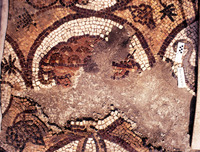 Damaged mosaic depicting a bowl - North Aisle