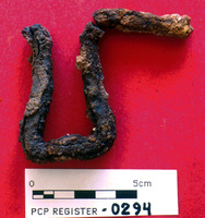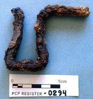 Pierced bar with hooked tang; iron - Sq. J2. Loc. 12