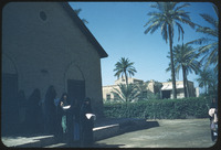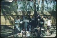 South Arabian mission: girls of mission, chapel to right, boy's school in background