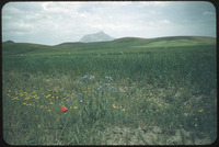 Flowers with mountains around Hamadan in background
