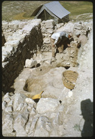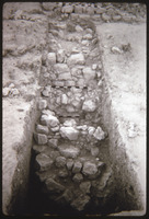 V ext looking S E casemate on right, outer & inner walls, N room in foreground