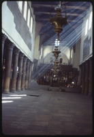 Church of the Nativity nave: red limestone pillars, 4th cen. ch?; mosaic panels:.north(left) 6 provincial councils; south wall: 6 ecumenical councils; restoration 1165-69
