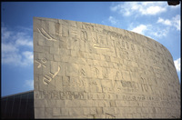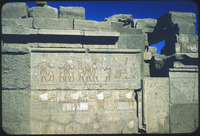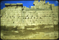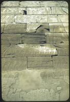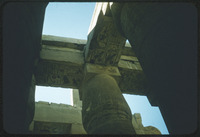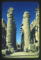 Columns with lotus (foreground) representing Upper Egypt and Papyrus columns (background) representing Lower Egypt in front of Barque sanctuary