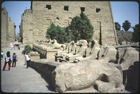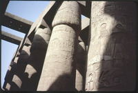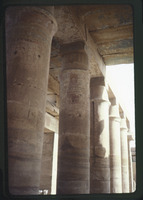Hypostyle Hall in Karnak Temple with color on upper columns