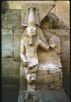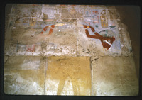Painting in Hapshepset room; Hatshepsut defaced in center with Horus (left) and Toth (right)