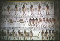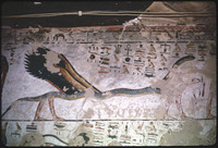 Scene on wall in Tutmosis IV tomb depicting Seti before Orisis