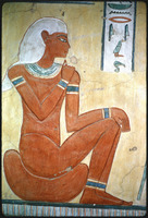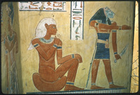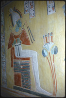 Painting showing Osiris (seated left) in Tombs of the Queens