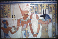 Paintings in Tombs of the Queens depicting Ramesses III and son before Anubis