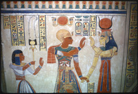 Paintings in Tombs of the Queens depicting Ramesses III, son, and Hathor