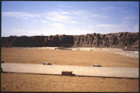 “Coca-cola temple” and mudbrick wall surrounding avenue to river