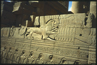 Qom Ombo temple: Horus left, crocodile (Sobek) right