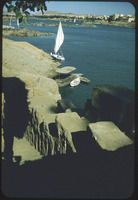 Nilometer and Paul and Nancy's sailboat on Elephantine Island