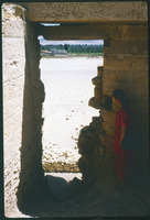 Sharry looks out a window in a chamber in Qasr Qarun to Fayoum