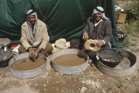 Jordan. Tall er-Rumeith, local workers cleaning pottery