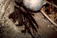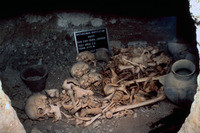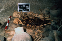 Jordan. Bab edh-Dhra', Cemetery A, Tomb A110NE. Articulated burials with remnants of cloth over female skeleton
