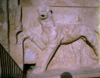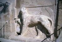 Jordan. Iraq al-Amir, sculpture of lion mother and cub put up (top)