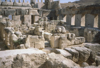 Jordan. Iraq al-Amir, reconstruction of east side of Qasr al-Abd and feline fountain