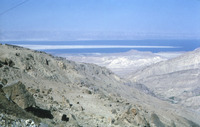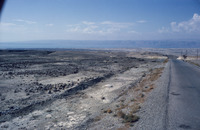 Jordan. Bab edh-Dhra', on the way to site. Lisan Peninsula visible in Dead Sea