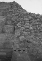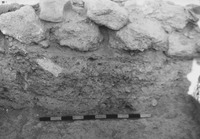 Jordan. Bab edh-Dhra' town site, Field I.1 looking west. Facing of mudbrick wall behind meter stick
