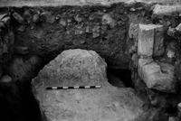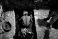 Jordan. Iraq al-Amir, square I.1.21, removing jar from southwest doorway