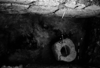 Jordan. Iraq al-Amir, square II.7, looking north at millstone on floor