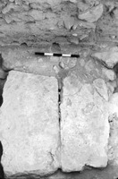 Jordan. Iraq al-Amir, square I.11, looking west at meter stick at bottom of first course showing bedrock and virgin soil below